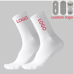 2024ถุงเท้ากีฬาสีดำสีขาวสำหรับทุกเพศถุงเท้าผ้าฝ้ายเนื้อนุ่มระบายอากาศได้ดีโลโก้ตามสั่ง