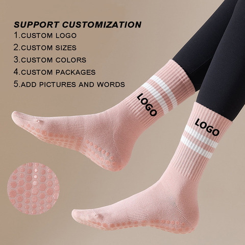 ถุงเท้าพิลาทีสโยคะสำหรับผู้หญิงถุงเท้าพิลาทีสป้องกันการลื่นปักโลโก้ตามสั่งผ้าคอตตอนแฟชั่นคุณภาพสูง