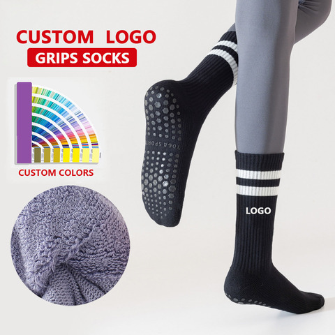 ถุงเท้ากันลื่นสำหรับผู้หญิงสำหรับผู้ใหญ่ฟิตเนสโยคะพิลาทิสผ้าฝ้ายโลโก้ออกแบบได้ตามต้องการ