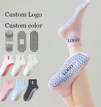 Meias femininas personalizadas para pilates, meias esportivas de silicone para ioga e ioga, meias grossas antiderrapantes de algodão com logotipo personalizado