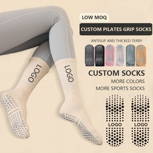 Özel kadınlar Pilates çorabı özel Logo kalın pamuk kaymaz kavrama Yoga çorap nefes ekip Pilates silikon spor çorapları